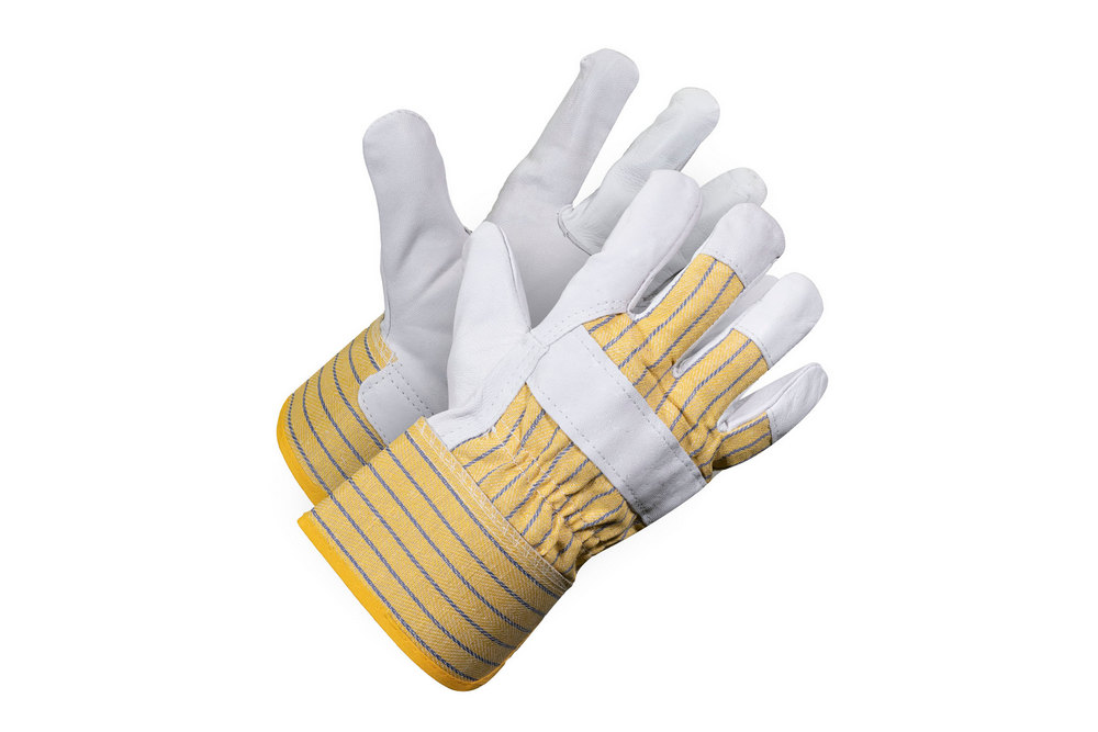 Goatskin grain leather fitters glove with slip on safety cuff.