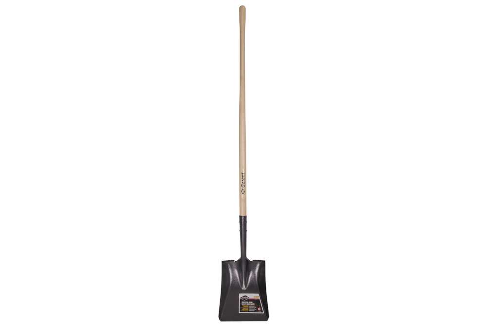 Industrial grade round point shovel, hollow back tempered steel blade, forward-turned steps, premium varnished ash long handle. Ideal for digging holes, planting trees and shrubs, digging up roots, and dividing perennials. Limited lifetime warranty.