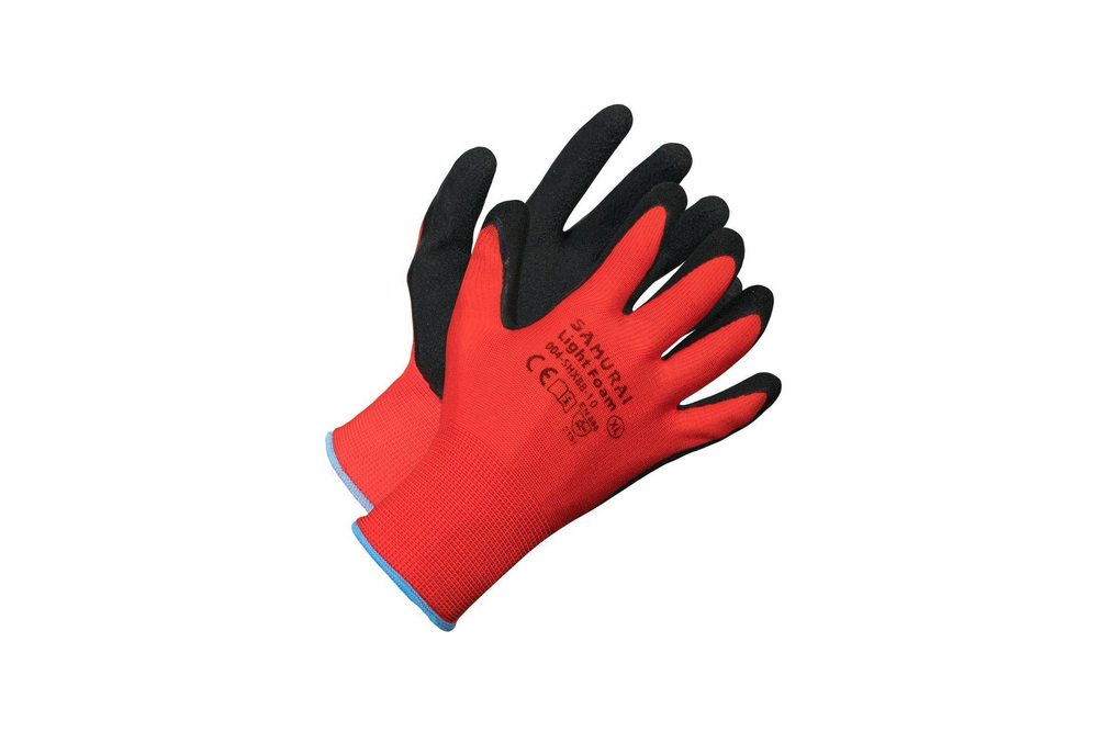 String knit seamless glove with foam latex palm coating.