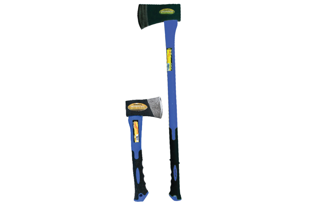 Two piece axe combo features drop forged steel blades that have been hardened and tempered. They use industrial grade epoxy for a longer lasting bond and have a solid core fibreglass handle with a polypropylene cover. They have double injected TPR soft-grips and polished cutting edges.