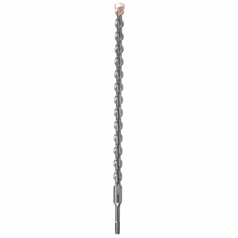 Carbide tipped for long life in tough applications. Centric tip ensures quick starts in concrete. Wear mark alerts user when tip wears beyond ANSI specification. Bit runs cooler thanks to improved flute design.