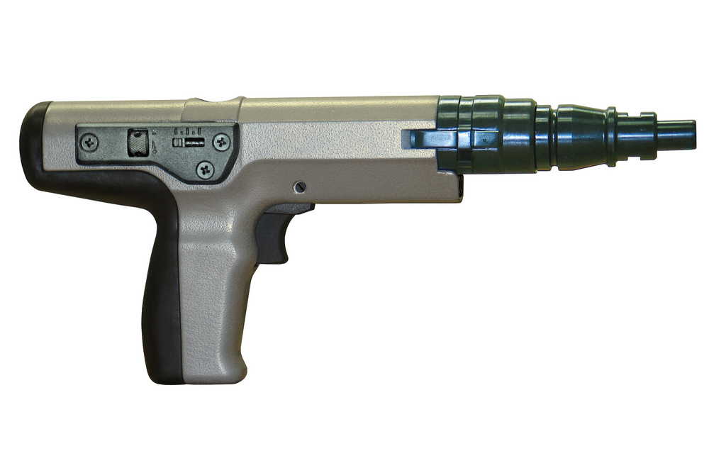 This semi-automatic piston drive tool is designed for speed, convenience, economy and safety. It uses .27 calibre strip loads featuring low recoil and low noise levels. For .300 Flat-Head and UD pins. LV 360K - Deluxe tool kit complete includes goggles, earplugs, cleaning brushes, lubricant, spare parts, manual and heavy-duty carrying case.