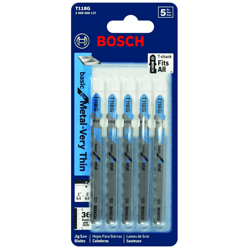 Includes: (5) 3-5/8 In. 36 TPI Basic for Metal T-Shank Jig Saw Blades