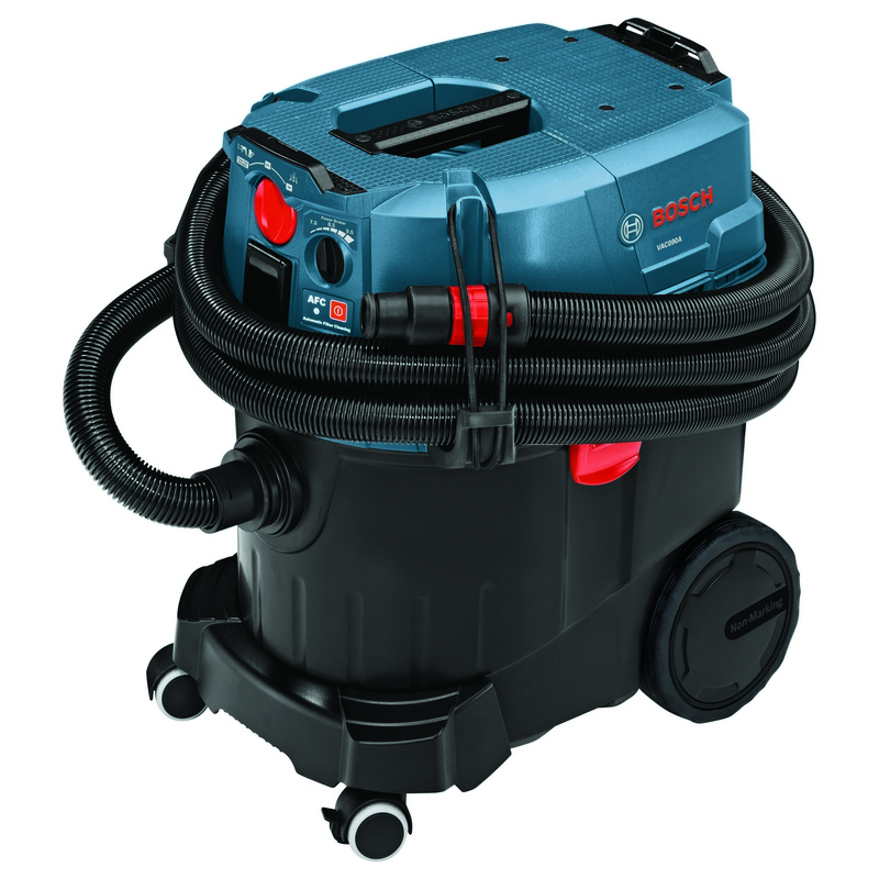 The Bosch VAC090AH 9-Gallon Dust Extractor with Auto Filter Clean and HEPA Filter provides a complete package that is designed to help users move toward compliance with the OSHA silica dust regulation. The dust extractor delivers a maximum 150-cubic-feet-of-air-per-minute rate (CFM), with a sustainable 97 In. static water lift (maximum). The automatic on-board filter-cleaning system activates every 15 seconds to help maintain maximum suction power. The included HEPA filter captures 99.97% of particles at 0.3 microns and larger. The included fleece filter bag helps to protect the filter and provides the optimal containment of dry dust and debris. The dust extractor also has power tool activation that allows the tool to activate the vac and a Power Broker dial to match the suction force to application.