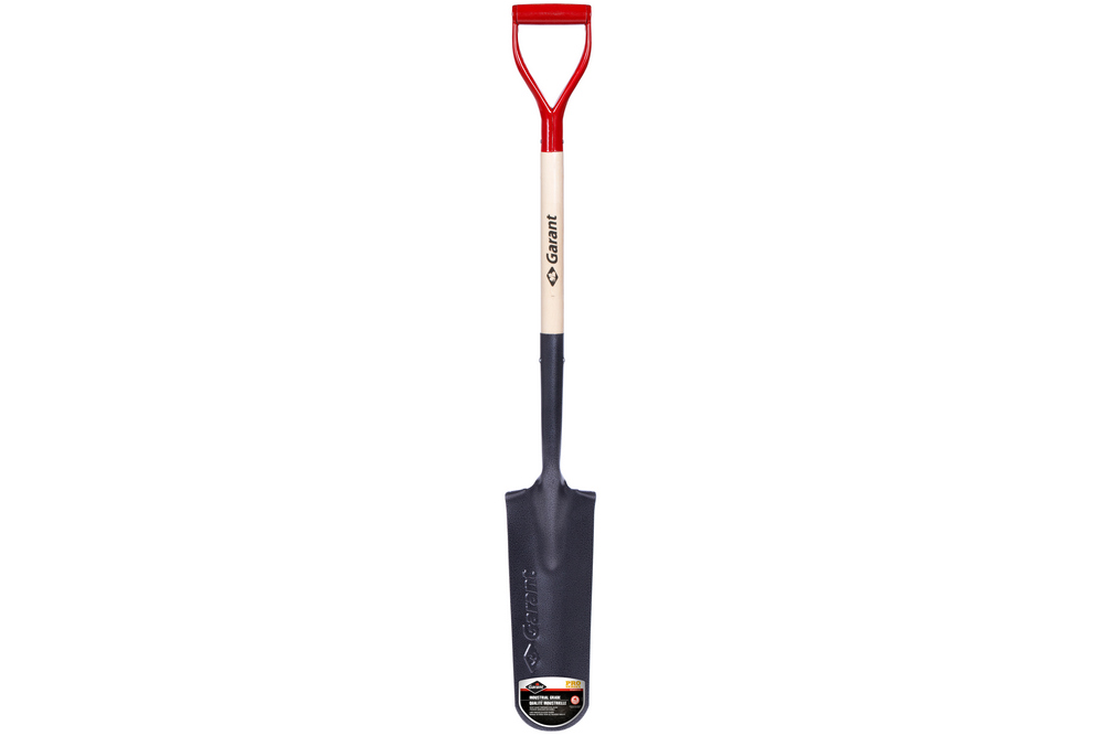 Industrial grade drain spade. Heavy gauge tempered steel blade with forward-turned steps. Premium varnished ash handle with steel D-grip. The perfect tool for installing irrigation and landscape lighting systems, and for digging shallow trenches around flowerbeds. Limited lifetime warranty.