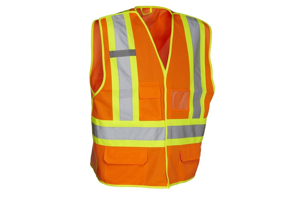 5 point traffic tear away vest. Polyester tricot body. Meets CSA approvals.