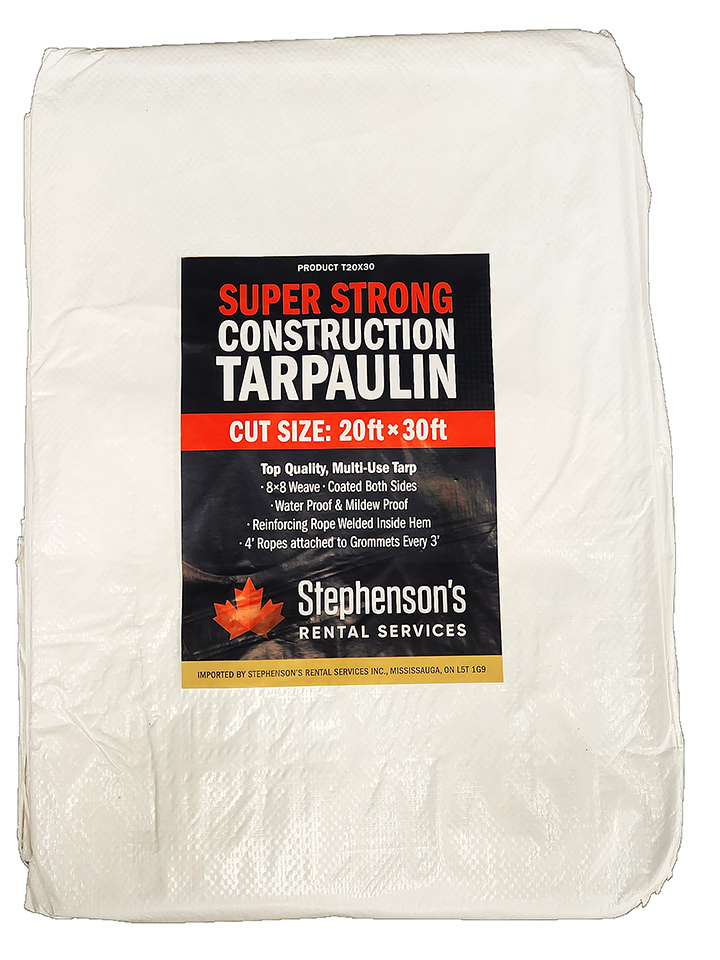 Construction Tarps are fabricated with woven double coated polyethylene (PE) fabric. This durable light weight tarpaulin offers protection against weather and falling debris, also keeps heat in the working area. Construction Tarps are translucent, which allows light in through. Grommets are installed every 3ft for easy installation.