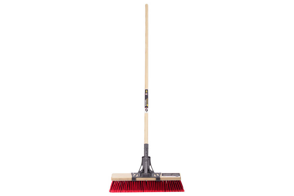 Industrial grade Multi-surfaces Push Broom for indoor and outdoor use. 18 in. brush riveted and screwed for maximum reinforcement. Tempered steel bracket, formed and welded for more sturdiness. Premium varnished ash handle. Perfect for sweeping on concrete, wood surfaces and asphalt. Limited lifetime warranty.