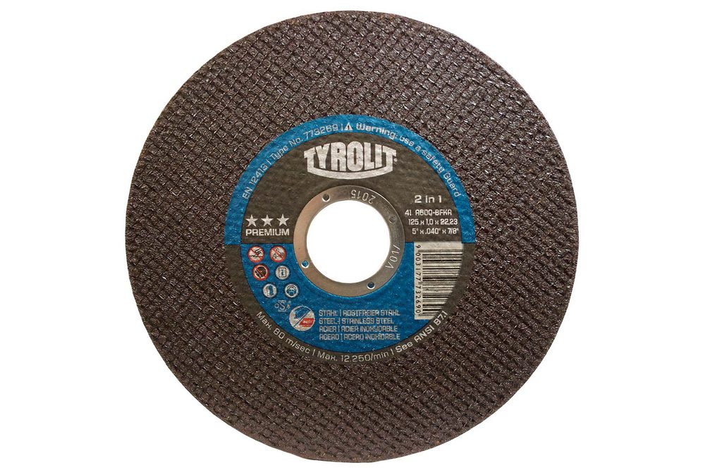 4-1/2" x .040" x 7/8" Tyrolit Premium 2-in-1 Cut-Off Wheels, Type 1