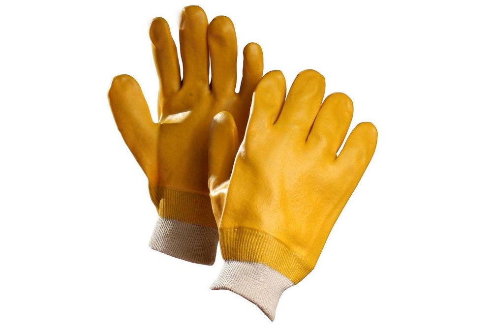 Fully dipped PVC glove with knit wrist. Chemical resistant.