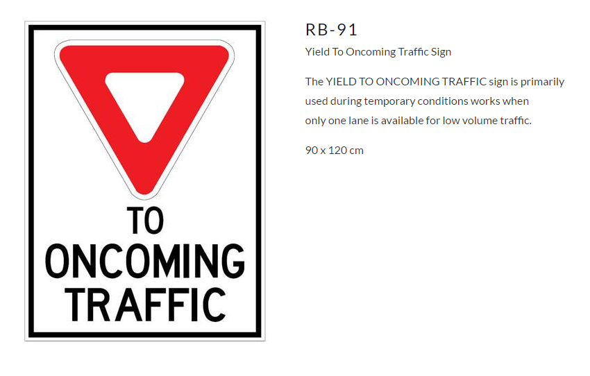 YIELD TO ONCOMING TRAFFIC SIGN - RB91